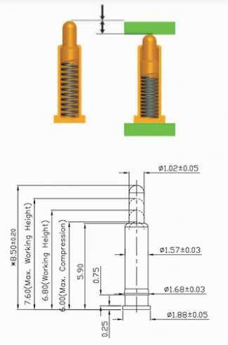 Den grundläggande arbetshöjden för Pogo-stiftet (fjäderbelastad kontakt):